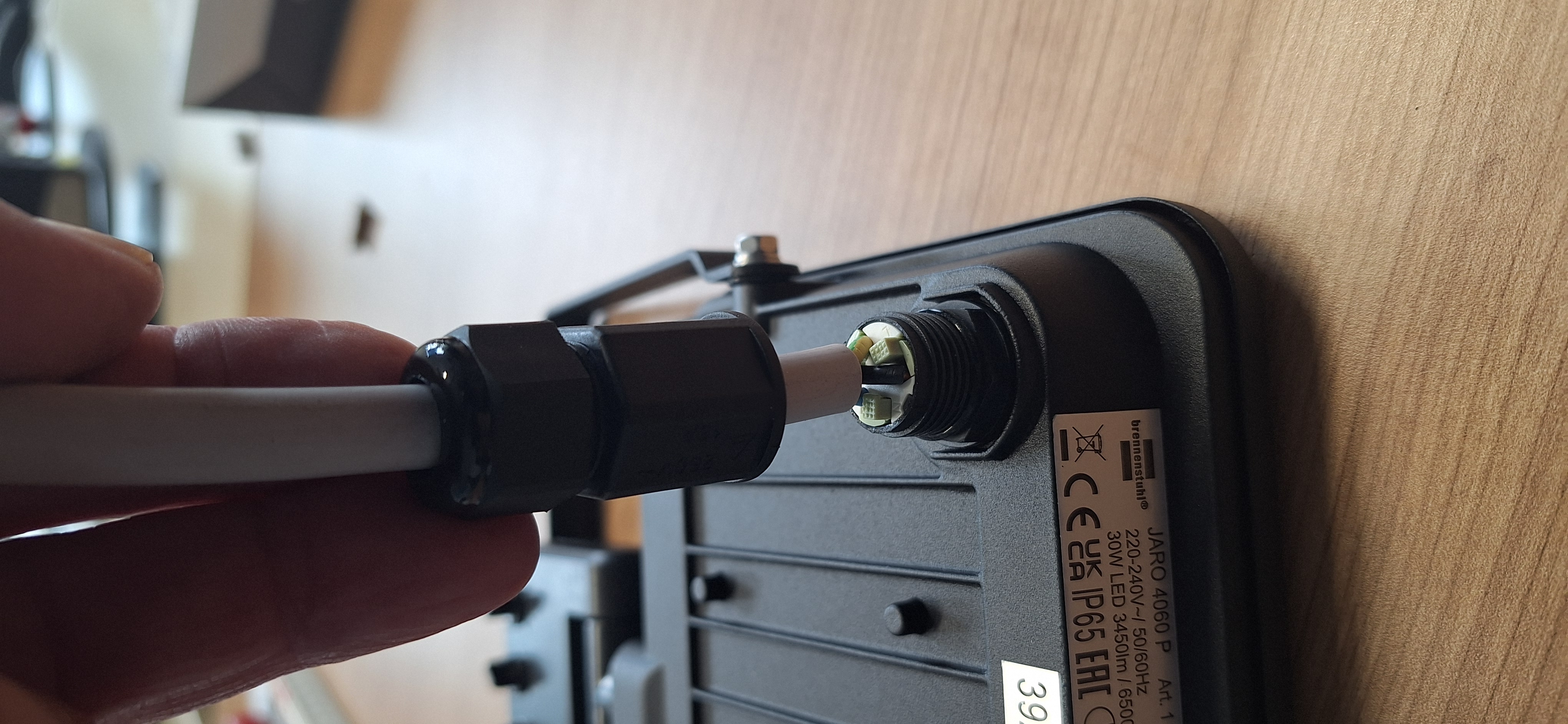 8. Achten Sie darauf, dass das Kabel genug Spielraum hat, um einen Schwanenhals zu formen. Dieser ist wichtig, dass Wasser am Kabel abläuft und nicht in die Dichtung fließt.