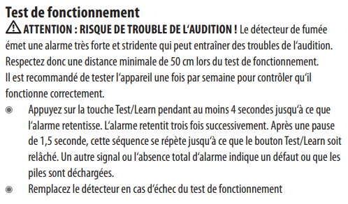 - Réveiller le détecteur de fumée en appuyant sur la touche de test jusqu'à ce que la LED rouge du boîtier commence à clignoter.