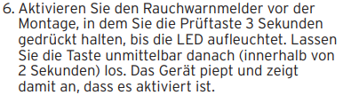 In de gebruiksaanwijzing vind je de volgende instructies om de rookmelder te activeren: